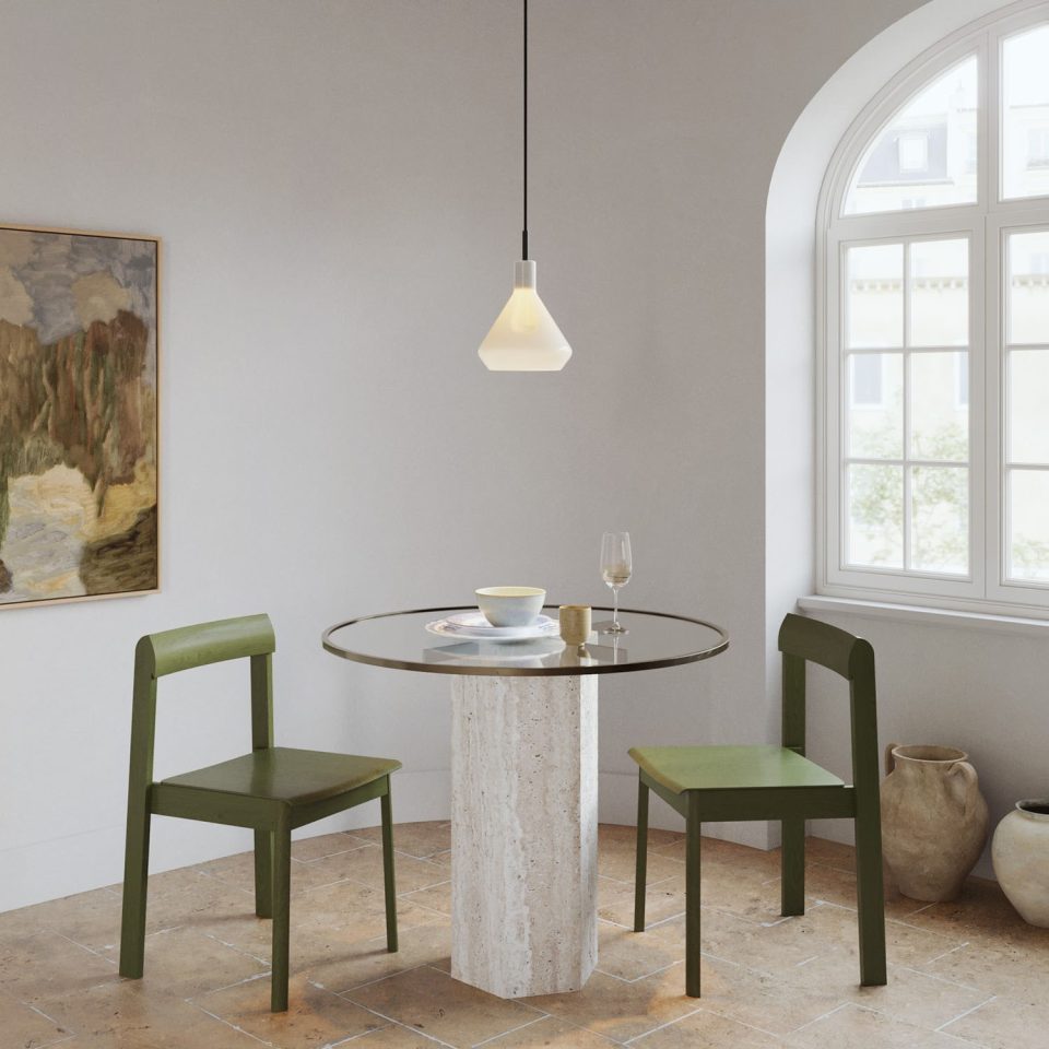 • Encima de la mesa del comedor: es el lugar clásico por excelencia. Una lámpara colgante bien centrada ayuda a crear un ambiente cálido y enfocado, ideal para comidas y reuniones.